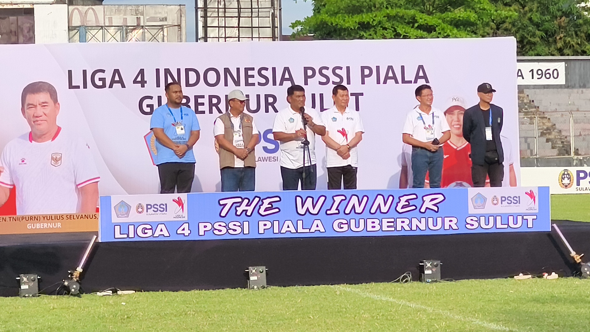 RagamSulut.co.id — Gubernur Sulawesi Utara, Yulius Selvanus, menyampaikan pesan inspiratif saat penutupan Liga 4 Indonesia Piala Gubernur Sulut 2025/2026 yang berlangsung di Stadion Klabat Manado, Minggu (19/4/2026).