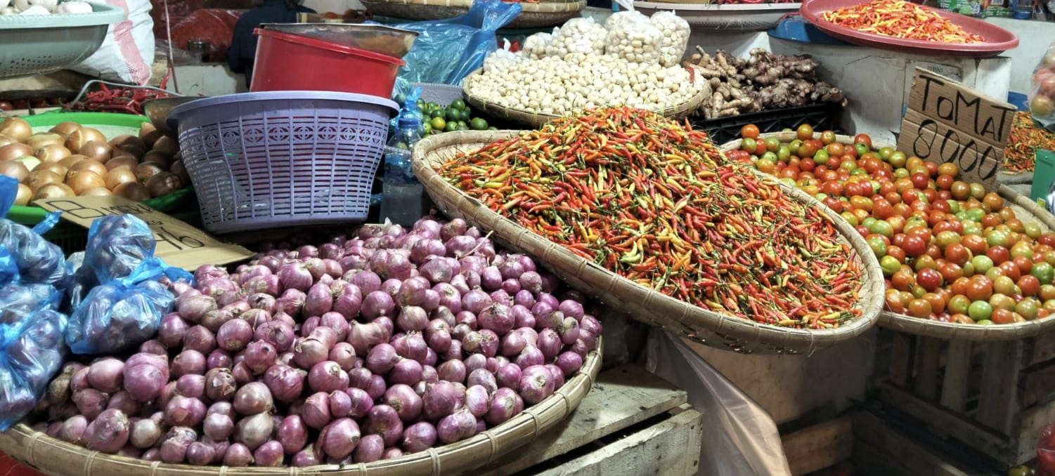 RagamSulut.co.id – Harga bumbu dapur di Pasar Karombasan Manado hari ini, Rica Gorontalo di harga Rp45.000/Kg sedangkan Bawang Merah Rp60.000-Rp56.000/Kg, Jumat (19/12/2025).