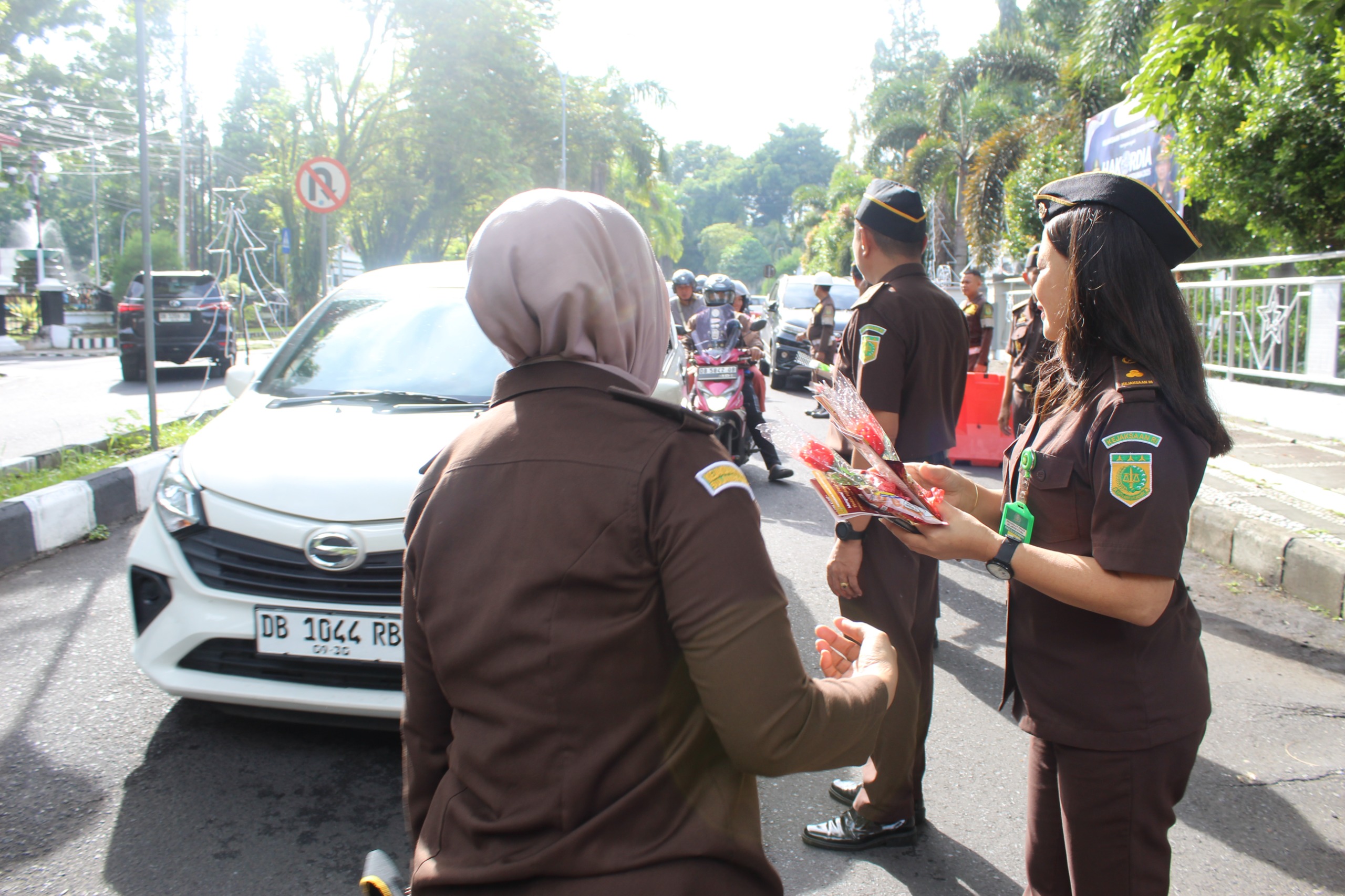 RagamSulut.co.id –Memperingati Hari Anti Korupsi Sedunia tahun 2025, Kejati Sulut bagikan stiker dan bunga kepada masyarakat dan pengguna jalan, Selasa (09/12/2025).